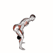 - Hinge at your hips, and bend your knees slightly, while keeping your back flat. Grab the kettlebell with both hands.